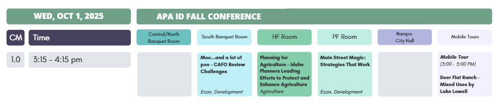 Please join us for a lightly facilitated panel conversation with a group of planning colleagues partnering to protect the viability of Idaho working lands and the agricultural economy. We will share current topics, issues, and stories from the field. Time will be reserved for Q&A with attendees.